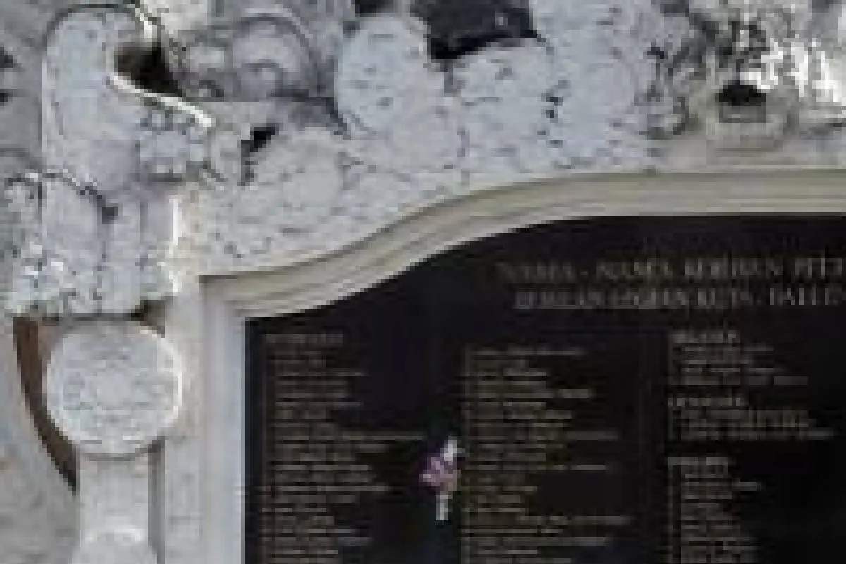 Selama sekitar dua menit, mereka berdoa di depan monumen yang mengukir nama-nama korban yang tewas pada peristiwa tragis sepuluh tahun silam.