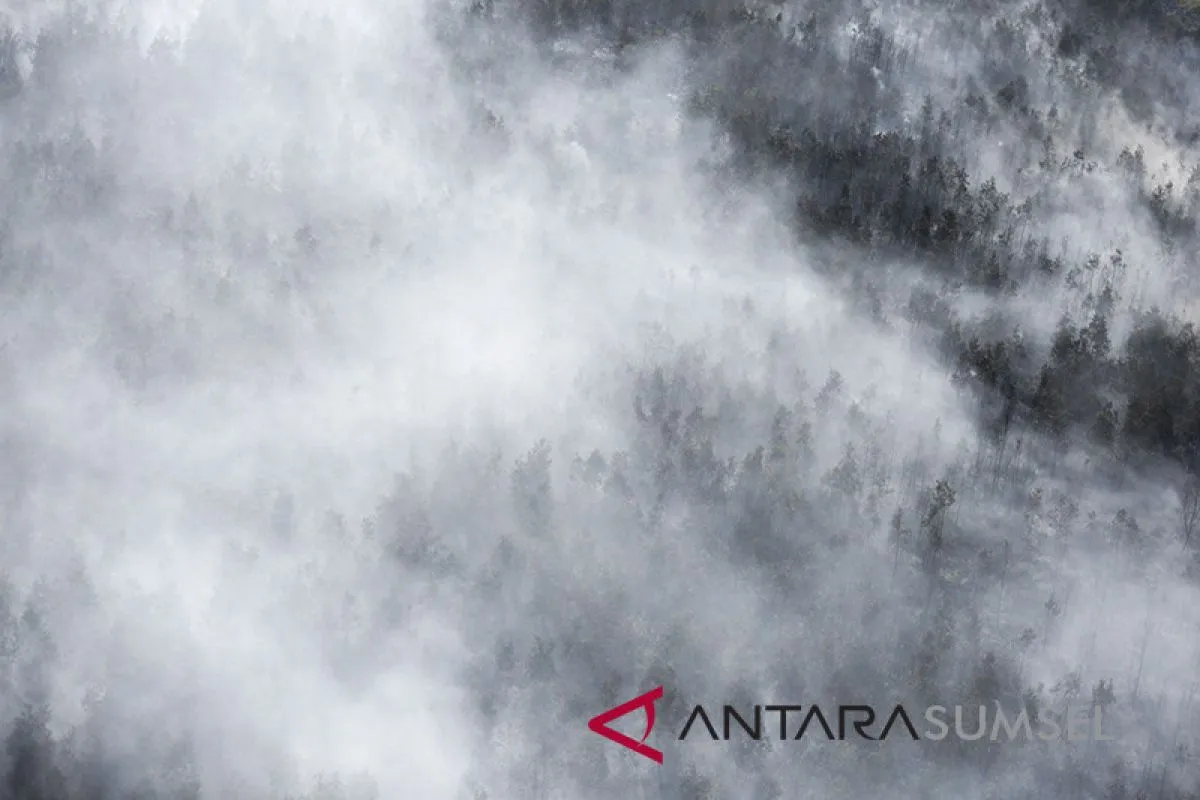 Asap membubung tinggi dari lahan yang terbakar di Pulu Beruang, Tulung Selapan, Ogan Komering Ilir (OKI), Sumatera Selatan, Kamis (13/9). BPBD Provinsi Sumatera Selatan masih berupaya melakukan pemadaman kebakaran yang terjadi sejak Rabu (12/9) dengan menurunkan satu helikopter Kamov, satu helikopter MI-172 dan satu helikopter MI-8Mtv-1. (ANTARA News Sumsel/Nova Wahyudi/dol/18)