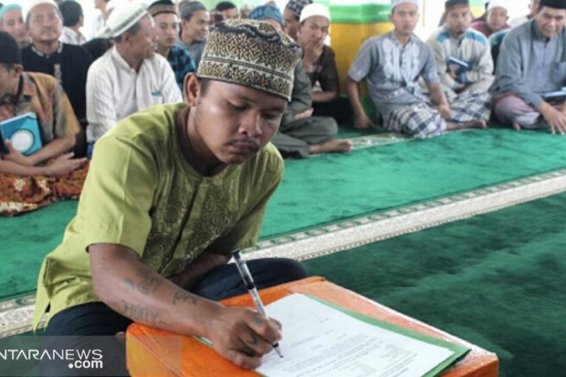 Banyuasin, Sumatera Selatan (ANTARA) - Seorang narapidana di Lembaga Permasyarakatan Kelas III Banyuasin, Sumatera Selatan, memutuskan untuk memeluk agama Islam setelah sering melihat rekan-rekan satu kamarnya beribadah.