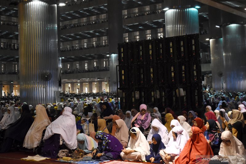 Sejumlah anak-anak yang mengikuti orang tua mereka melaksanakan ibadah salah Idul Adha 1940 hijriah/2019 masehi di Masjid Istiqlal Jakarta, Minggu (11/8/2019) (ANTARA/FAUZI LAMBOKA)