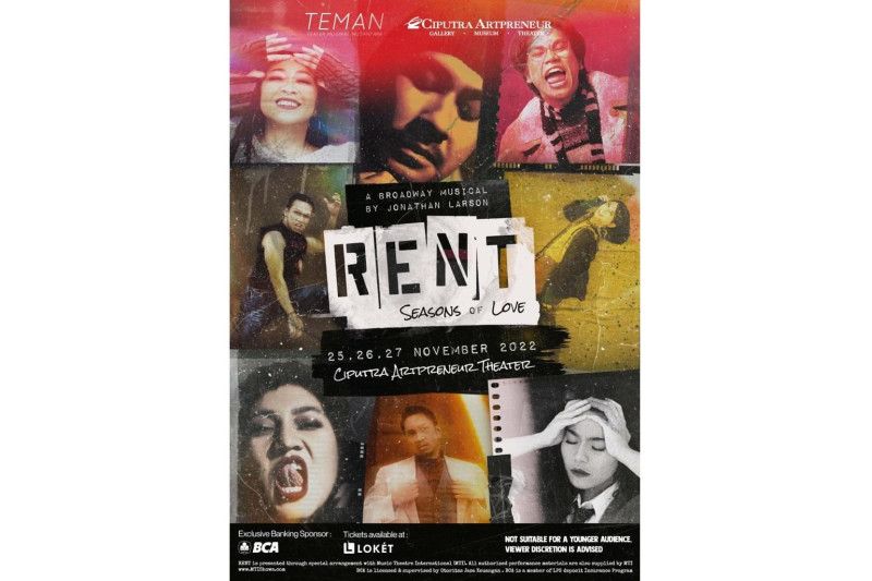 Jakarta (ANTARA) - Drama musikal broadway "RENT: The Musical" akan pentas perdana di Ciputra Artpreneur Jakarta pada 25 - 27 November 2022, merupakan persembahan Teman Musicals (Teater Musikal Nusantara) bekerja sama dengan Ciputra Artpreneur.