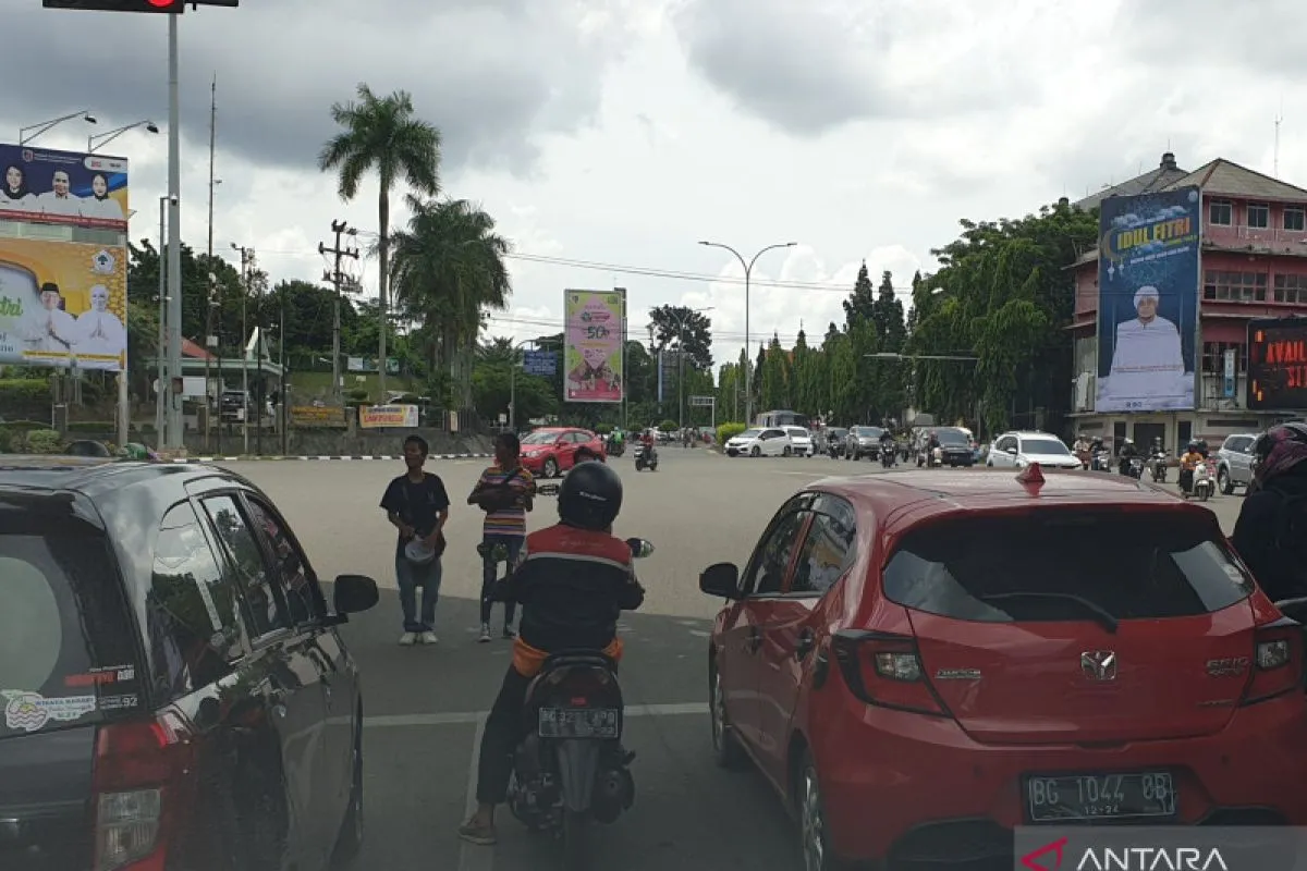 Suasana lalu lintas di simpang empat kawasan Jalan Jenderal Sudirman, Cinde Palembang. (ANTARA/Yudi Abdullah)