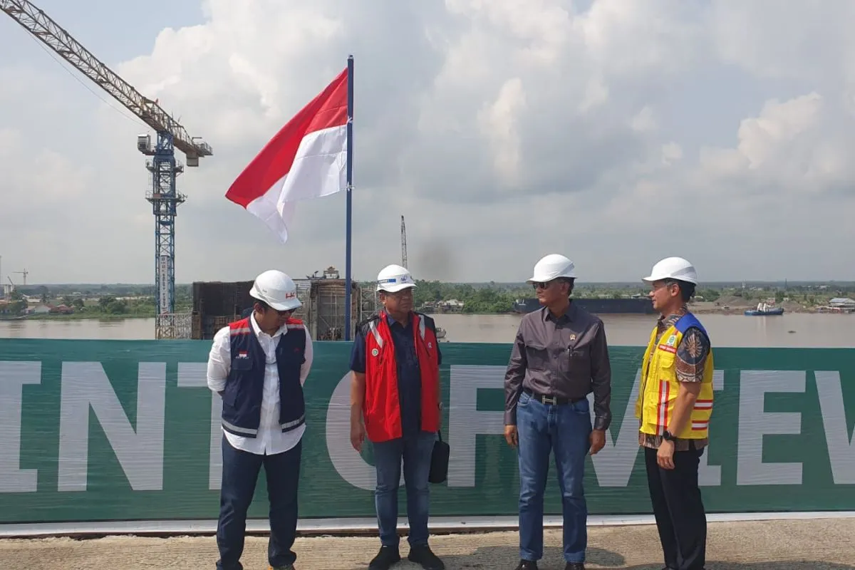 Ia menjelaskan, progres pembangunan jembatan sepanjang 1,68 kilometer itu masih sesuai dengan perencanaan. Namun, tingginya lalu lintas angkutan di sungai yang menghambat pembangunan jembatan tersebut.